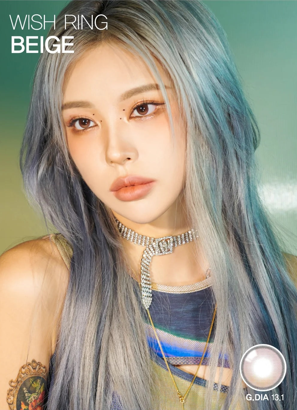 - Look in the mirror so that your cornea comes into the center of your eye. Slowly bring the Ann365 Wish Ring Beige Monthly colour contact lenses close to your eye and put it gently in place, still looking in the mirror. If you glance upwards when doing this, the lens will not be properly centered on your cornea.