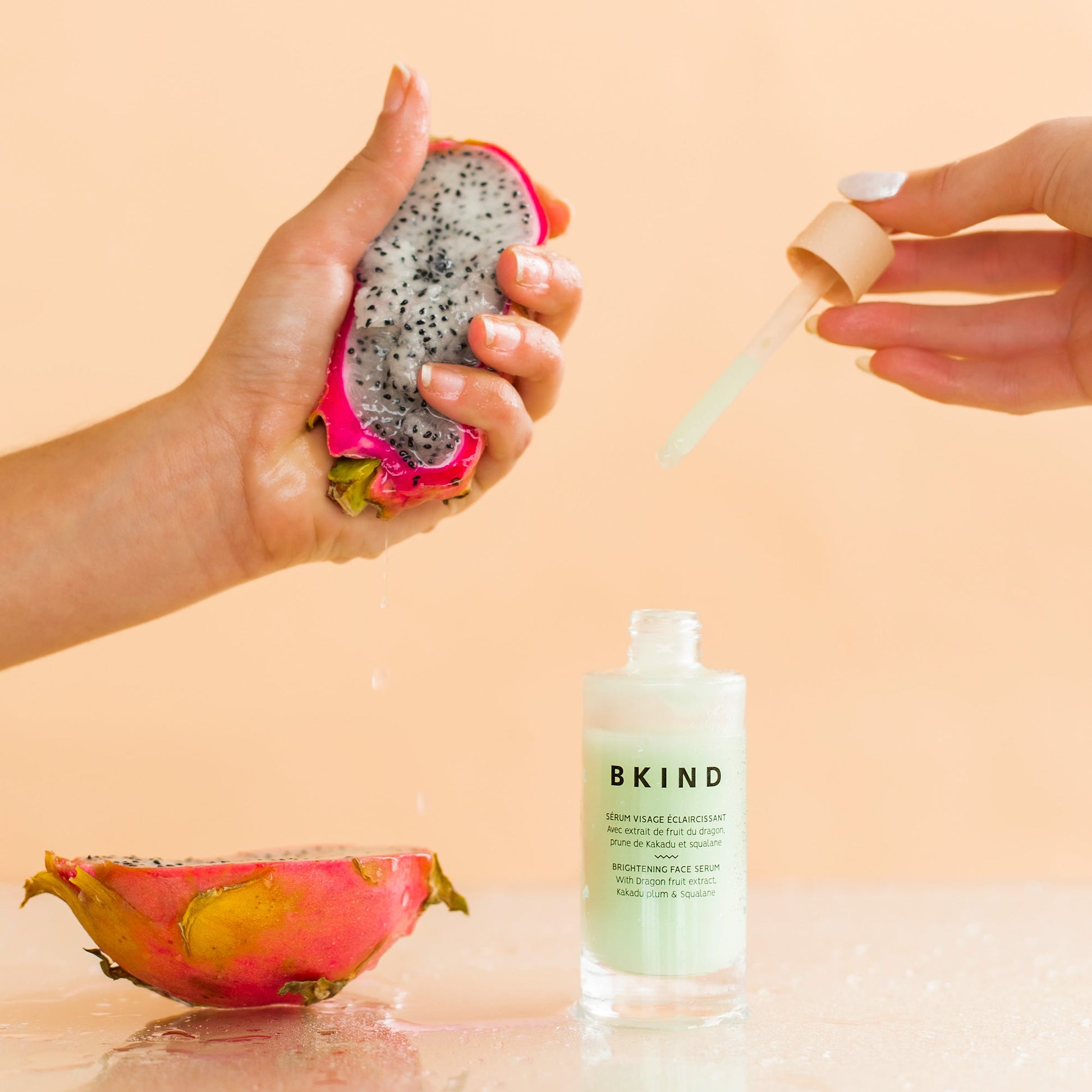 Formulated with Dragon fruit extract, Kakadu plum (high source of vitamin C), Squalane & Hyaluronic acid, this face serum helps brighten and even out the complexion, moisturize the skin and reduce the appearance of pigment spots. Skin is left glowing, hydrated, energized, protected and evened out in just one step!