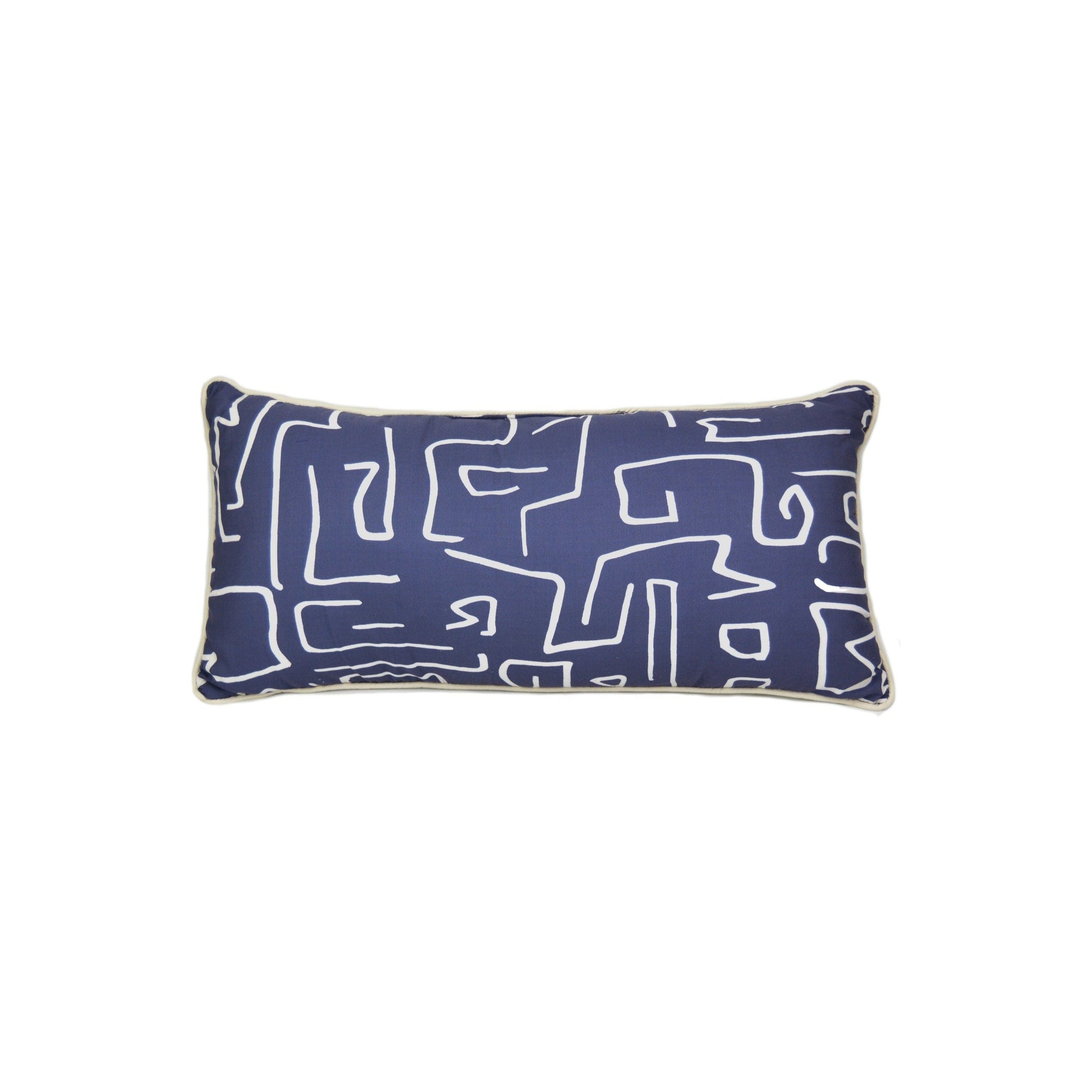 The Cloud Magic rectangular pillow brings a pop of navy blue to the soft colors of the Cloud Magic Quilt set. This elegant pillow features an abstract design in white, while the pillow itself looks great atop your bed or on your favorite lounge chair. You can mix and match to create your own style. Measures 11" x 22"